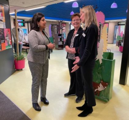 Demissionair minister voor Primair- en Voortgezet Onderwijs Mariëlle Paul bezocht vandaag basisschool Digitalis in Almere Stad. Ze kwam daar praten over het toenemende leraren-, schoolleiders- en personeelstekort in het onderwijs. Verder is er gesproken over wat de schoolbesturen, opleiders en de gemeente Almere doen om dat probleem het hoofd te bieden. Een voorbeeld daarvan is ‘vernieuwend opleiden’, waarbij toekomstige leraren meer maatwerk in de opleiding krijgen en betere begeleiding.
